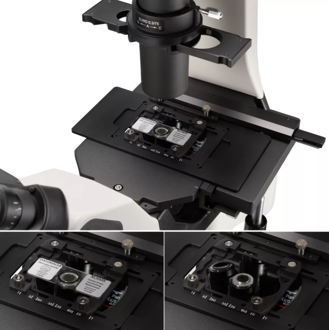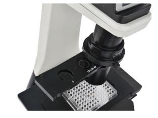 When a culture flask is used, the condenser can be removed to increase the working distance. This is also suitable for multilayer culture flasks.