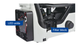 It is equipped with 3 fluorescent filter blocks, providing a wide range of dyes. This ensures clear and high-contrast fluorescent images.