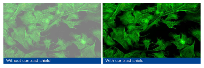 Contrast protection effectively prevents interference from external light, enhances the contrast of the fluorescent image, and provides fluorescent images with a high signal-to-noise ratio. When phase contrast observation is required, the contrast protection can be easily removed from the light path, preventing any negative effects on the quality of the phase contrast.