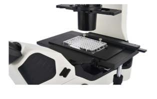 • The microscope has a fixed rectangular stage measuring 250 mm x 170 mm, along with an integrated Vernier scale. The ergonomic Charriot control system on the X and Y axes provides precise movement. The universal F/TE sample clamp allows for secure placement of various sample types; Petri dishes, hemocytometers, and other sample containers of different sizes can be easily accommodated.