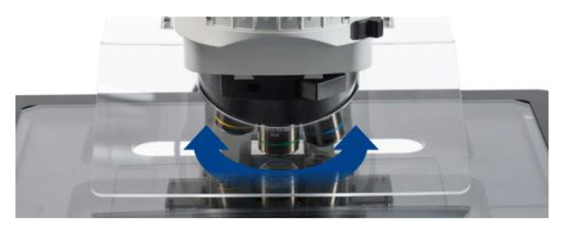 The control mechanism used for observation is located at the front of the microscope (next to the operator) and makes operating the microscope faster and more comfortable when observing samples. It can also reduce fatigue caused by long-term observations and suspended dust caused by large movements.