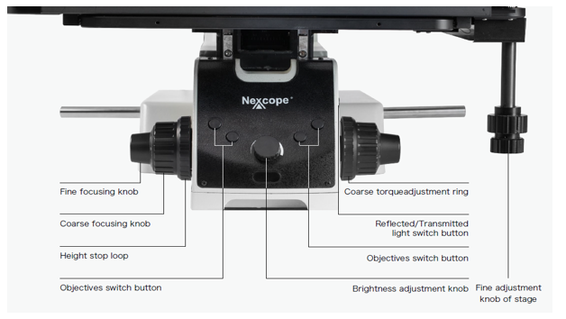 The focusing mechanism and fine adjustment handle of stage adopt the low hand position design, which conforms to the ergonomic design, and gives the greatest degree of comfortable feeling.